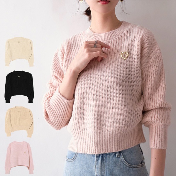 ブローチ付きワイドニットプルオーバー