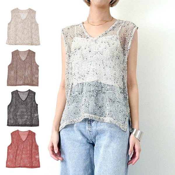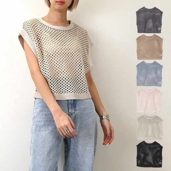 フィッシュネットノースリーブトップス