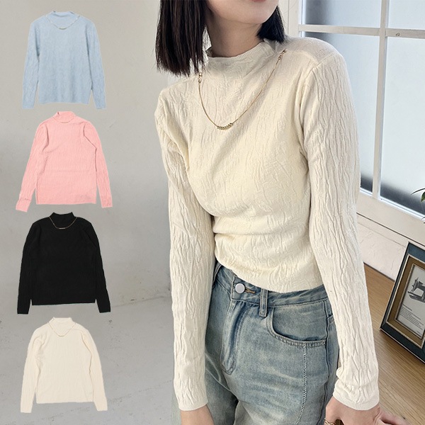 フェイクネックレス付きジャガードボトルネックニットトップス