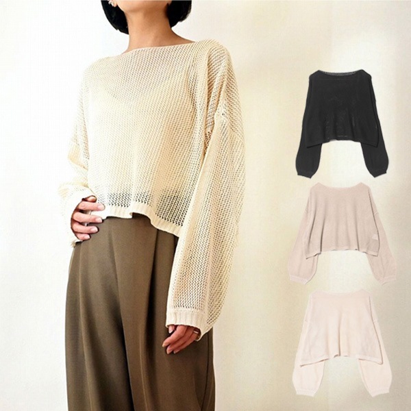 アクリル麻タッチフィッシュネットプルオーバー
