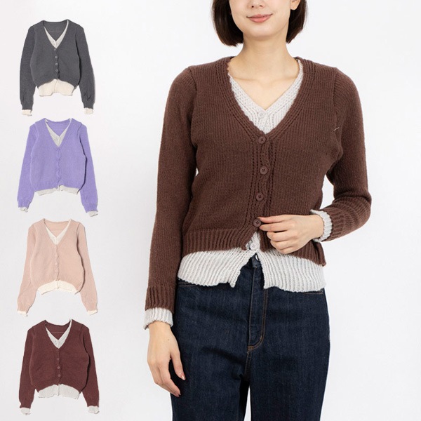 バイカラーニットカーディガン
