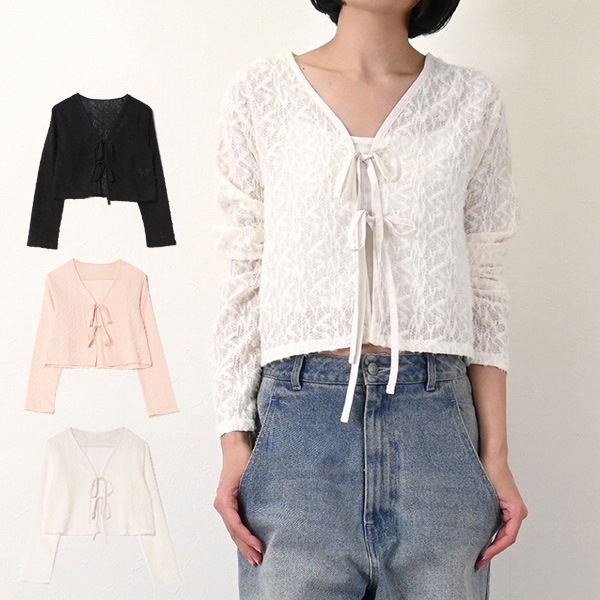 シアーシャギーリボンカーディガン