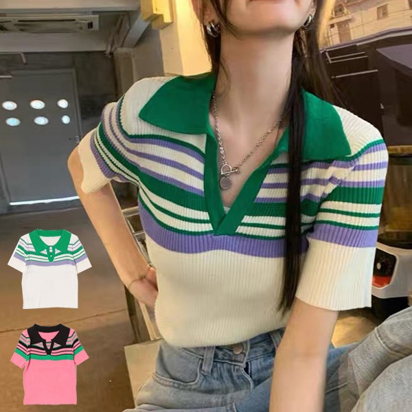 襟付きボーダーニット