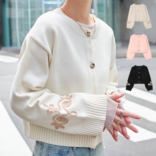 ゴールドボタンコード刺繍スポンディッシュニットカーディガン