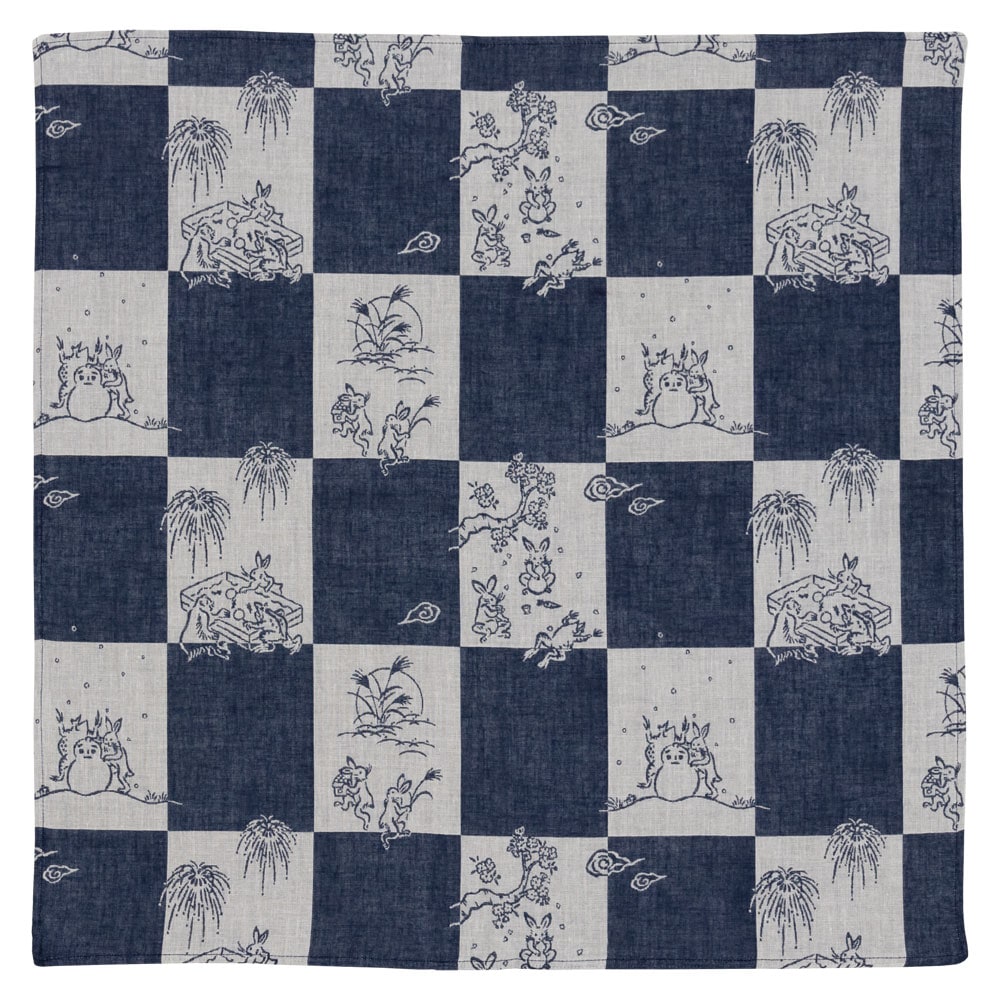 鳥獣戯画 ダブルガーゼふろしき チーフ48cm 市松模様 Choju-giga Furoshiki Wrapping cloth