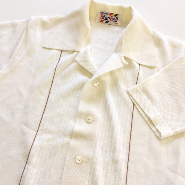 Star Bell スターベル 半袖シャツ オールドシャツ 国内古着 送料無料 メンズ M/白 ライン レトロ カジュアル 昭和モ...