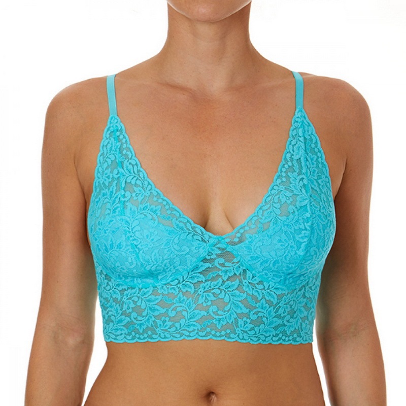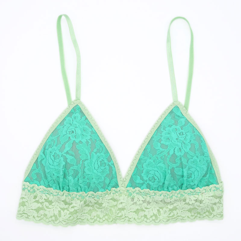 Vーネック レトロ レース ブラジャー (テンプティング ターコイズ)
