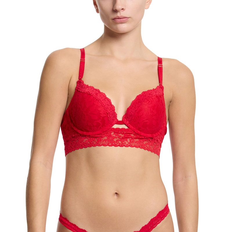 シグニチャー レース プランジ プッシュアップ ブラジャー (レッド)