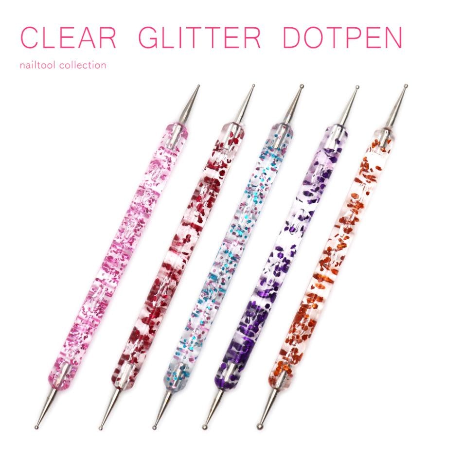 【ネコポス送料無料】ネイルツール クリアグリッタードットペン 5本セット