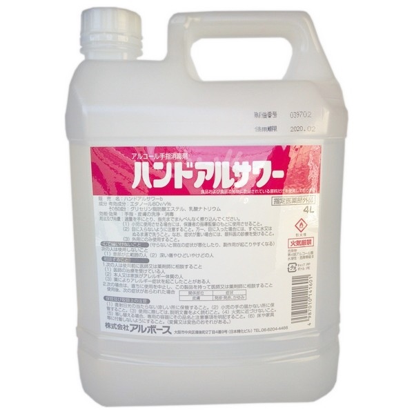 アルボース 手指消毒剤 ハンドアルサワー 4L