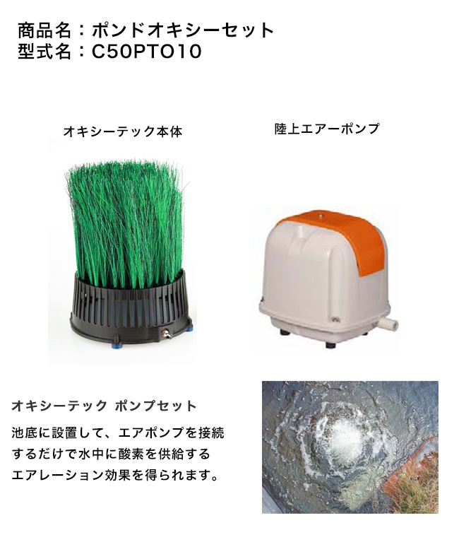 ポンドオキシーセット(型番:C50PTO10)オキシーテック本体・陸上エアポンプのセット【オキシーテックポンプセット 池 酸素供給...