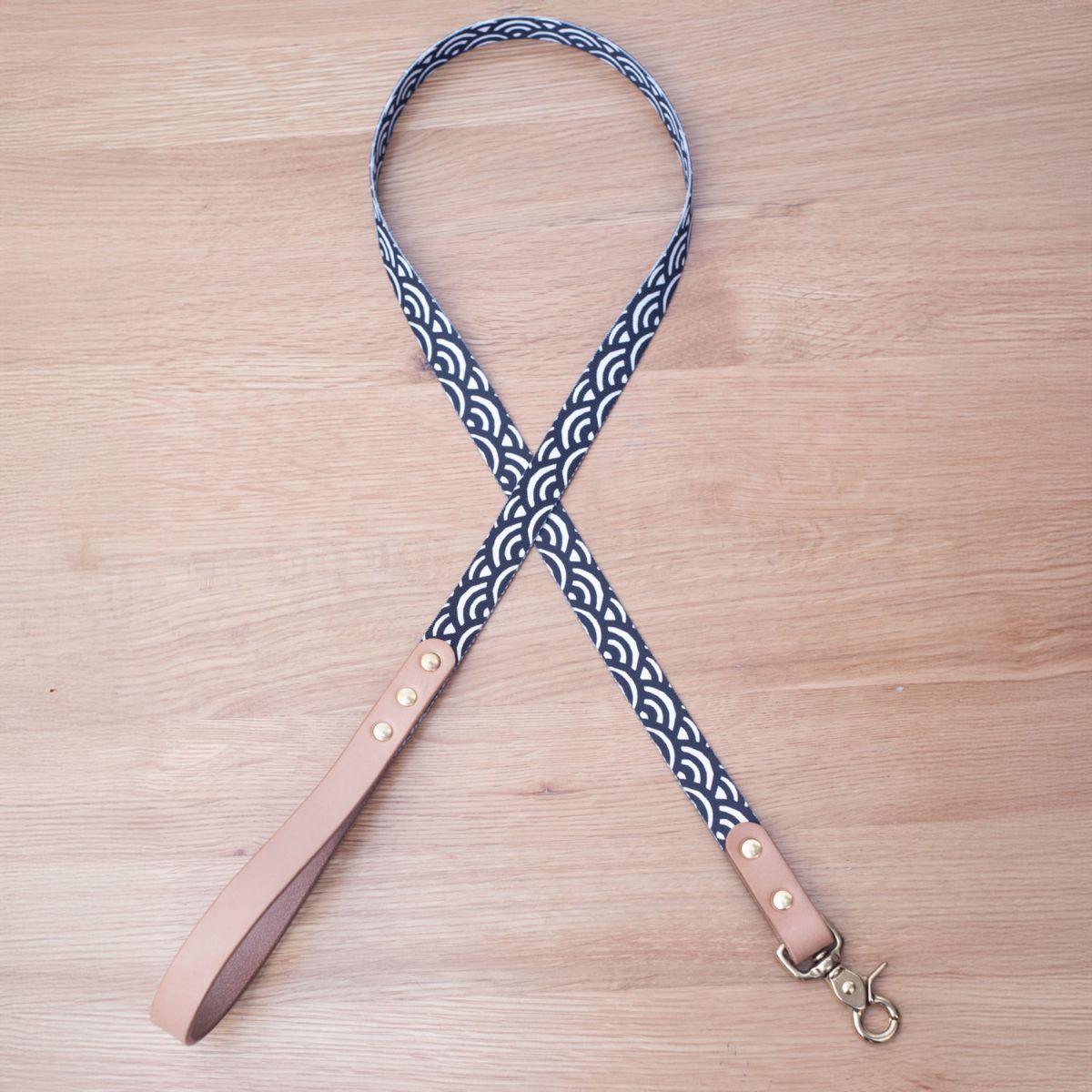 黒色青海波紋様リード 真鍮製ナスカン 小・中・大型犬用16/24mm幅 持ち手ヌメ革 A2683