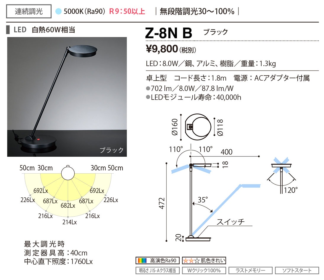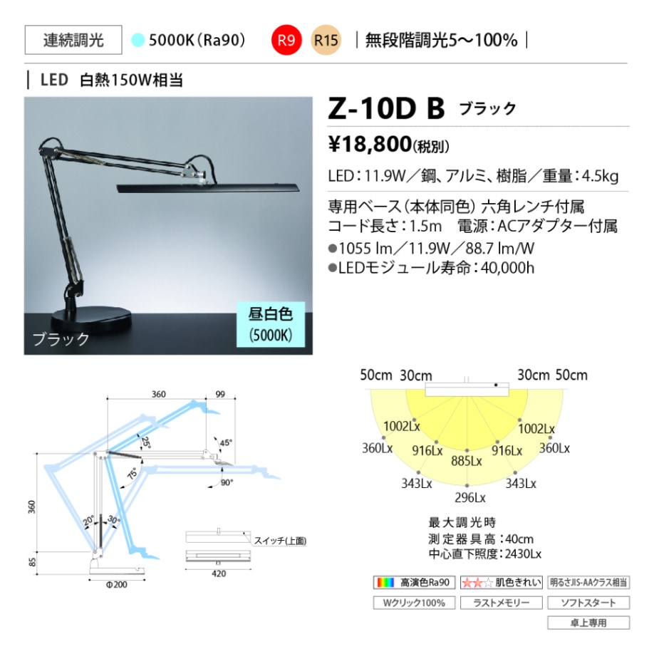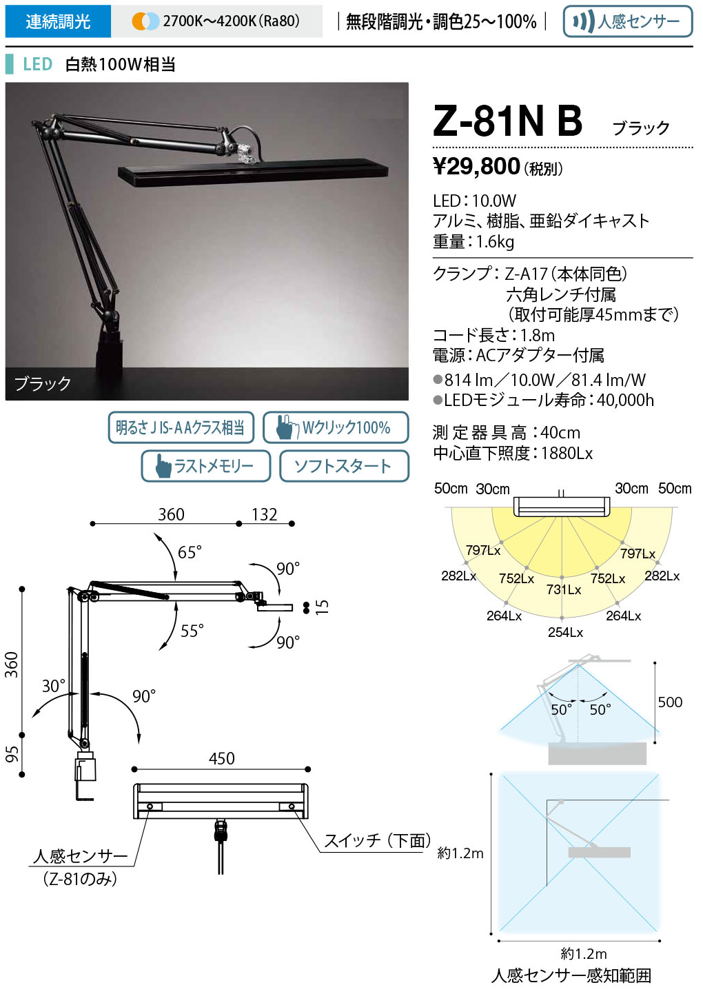 山田照明 Z-ライト(Z-LIGHT)Z-80PROIIB(Z-80PROII B) ブラック LEDデスクスタンド