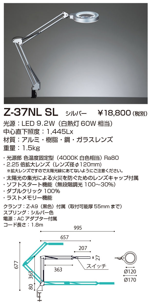 <販売終了品・後継機種あります>山田照明 Z-ライト(Z-LIGHT)Z-37NLSL(Z-37NL SL) シルバー LEDデス...