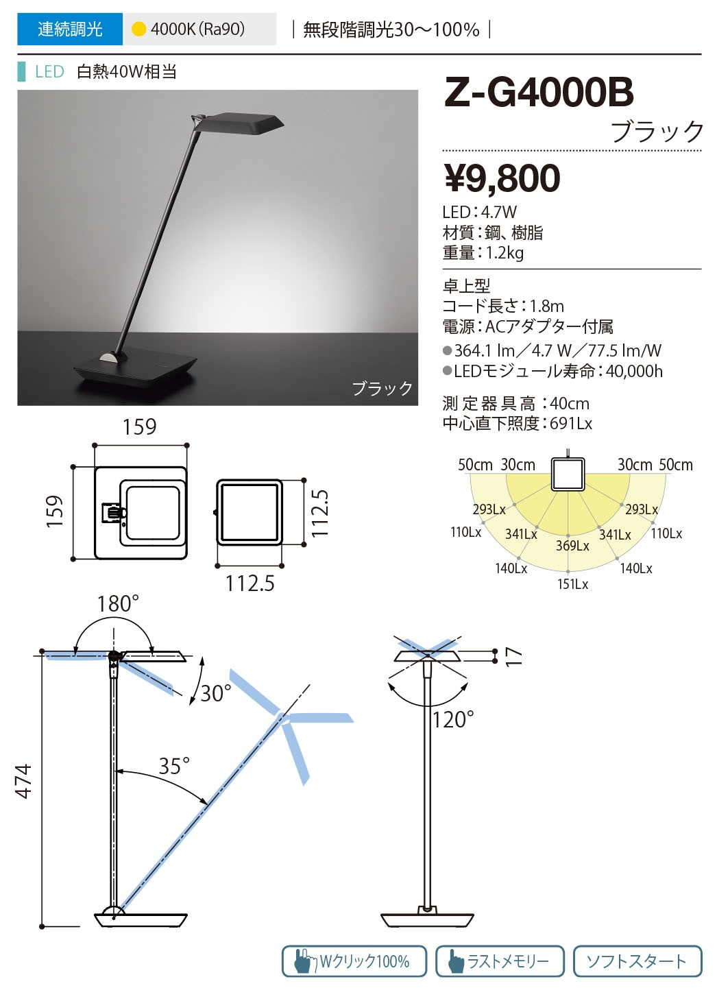 <販売終了品>山田照明 Z-ライト(Z-LIGHT)Z-G4000B(Z-G4000 B) ブラック LEDデスクスタンド
