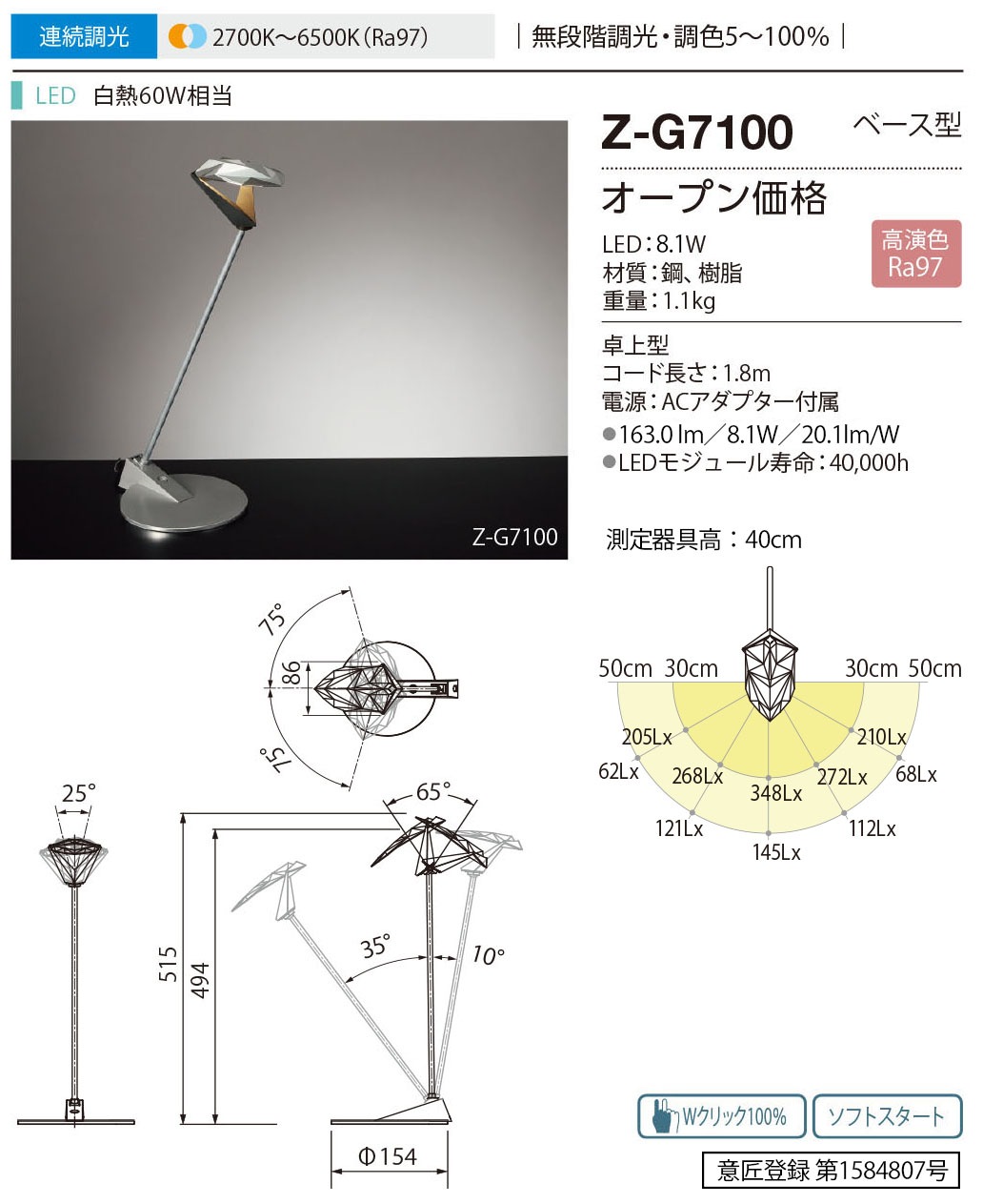 <販売終了品>山田照明 Z-ライト(Z-LIGHT)Z-G7100(Z-G7100) シルバー LEDデスクスタンド