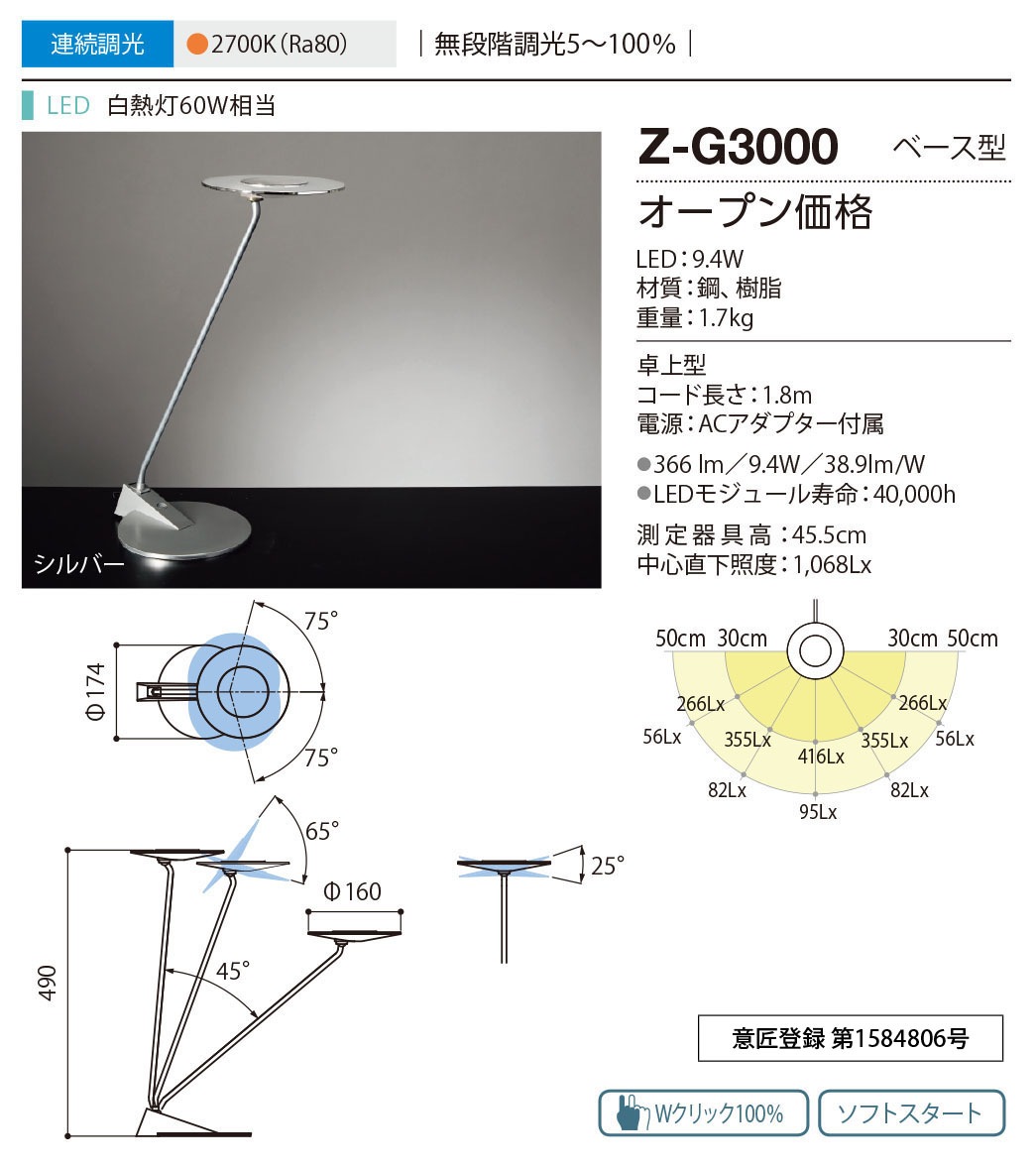 <販売終了品>山田照明 Z-ライト(Z-LIGHT)Z-G3000(Z-G3000) シルバー LEDデスクスタンド