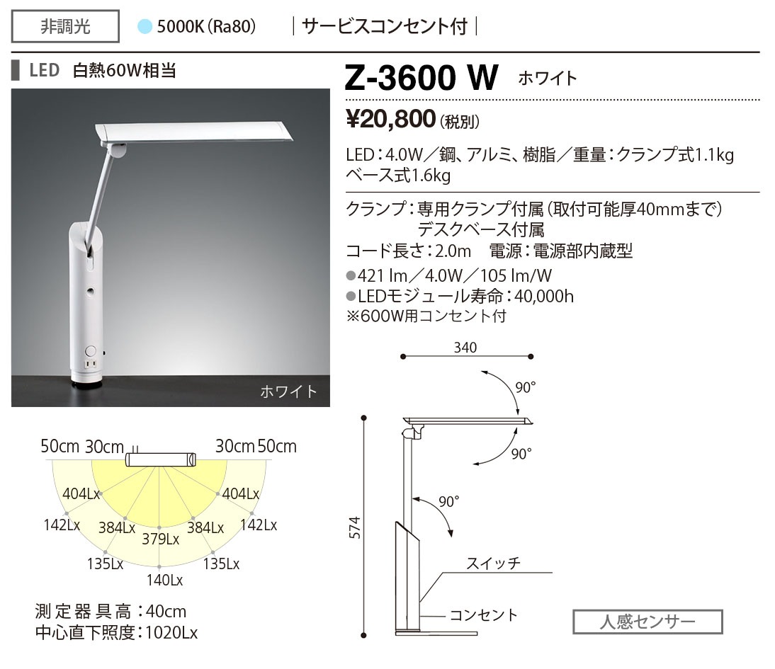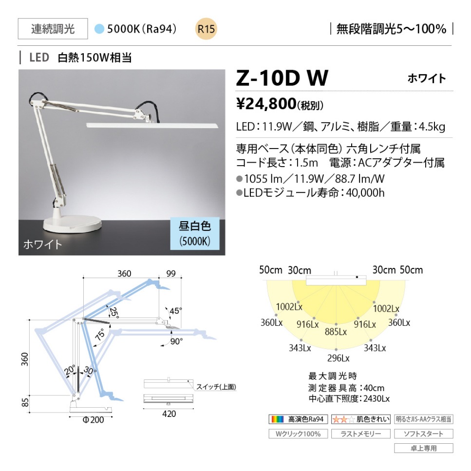 山田照明 Z-ライト(Z-LIGHT)Z-3600W(Z-3600 W) ホワイト LEDデスクスタンド