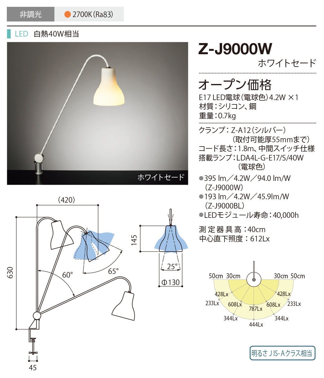 <販売終了品>山田照明 Z-ライト(Z-LIGHT)Z-J9000W(Z-J9000 W) ホワイト LEDデスクスタンド