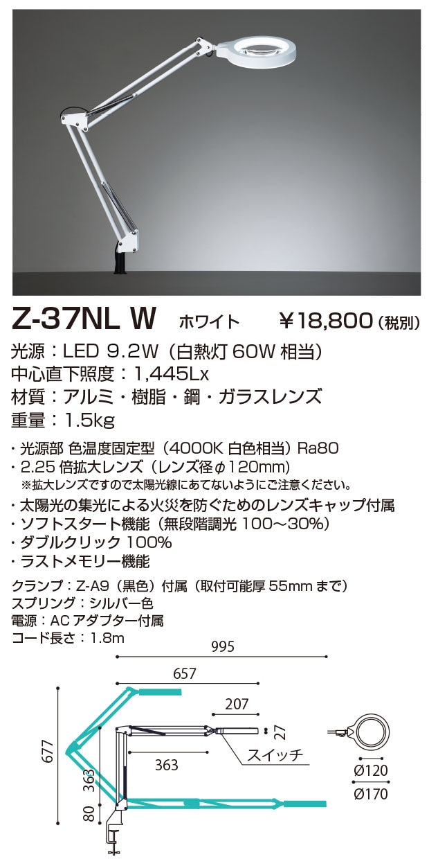 <販売終了品・後継機種あります>山田照明 Z-ライト(Z-LIGHT)Z-37NLW(Z-37N LW) ホワイト LEDデスクス...