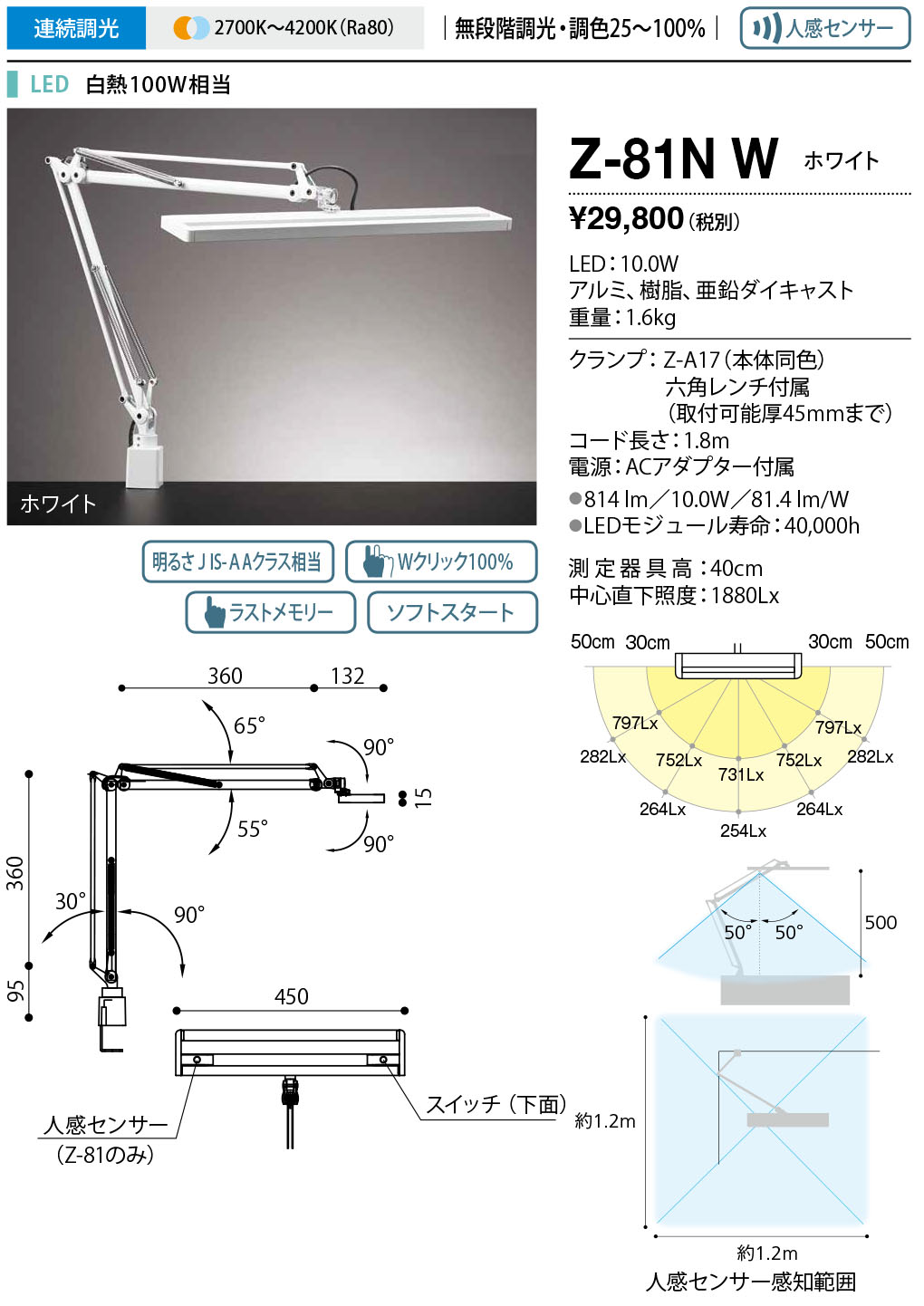 <販売終了品>山田照明 Z-ライト(Z-LIGHT)Z-81NW(Z-81N W) ホワイト LEDデスクスタンド