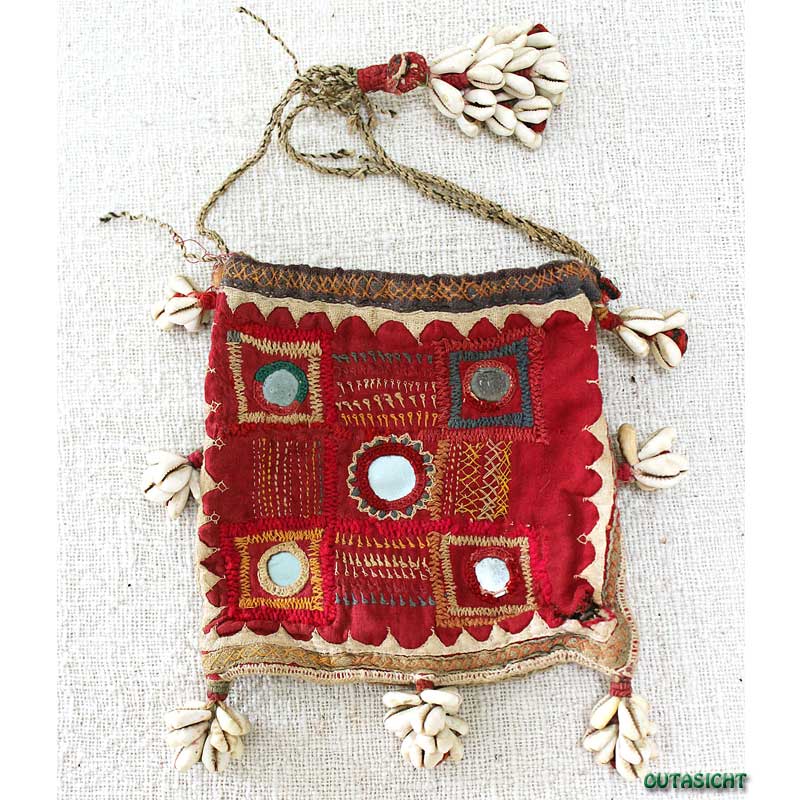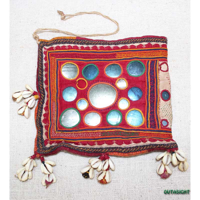 ミラーワーク バンジャラ族 ポシェット 貝殻付き アンティーク インド IAT-09