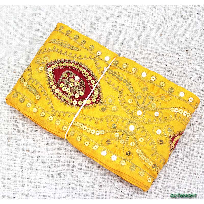 刺繍 サリーボーダー(F) 黄色 インド INT-20