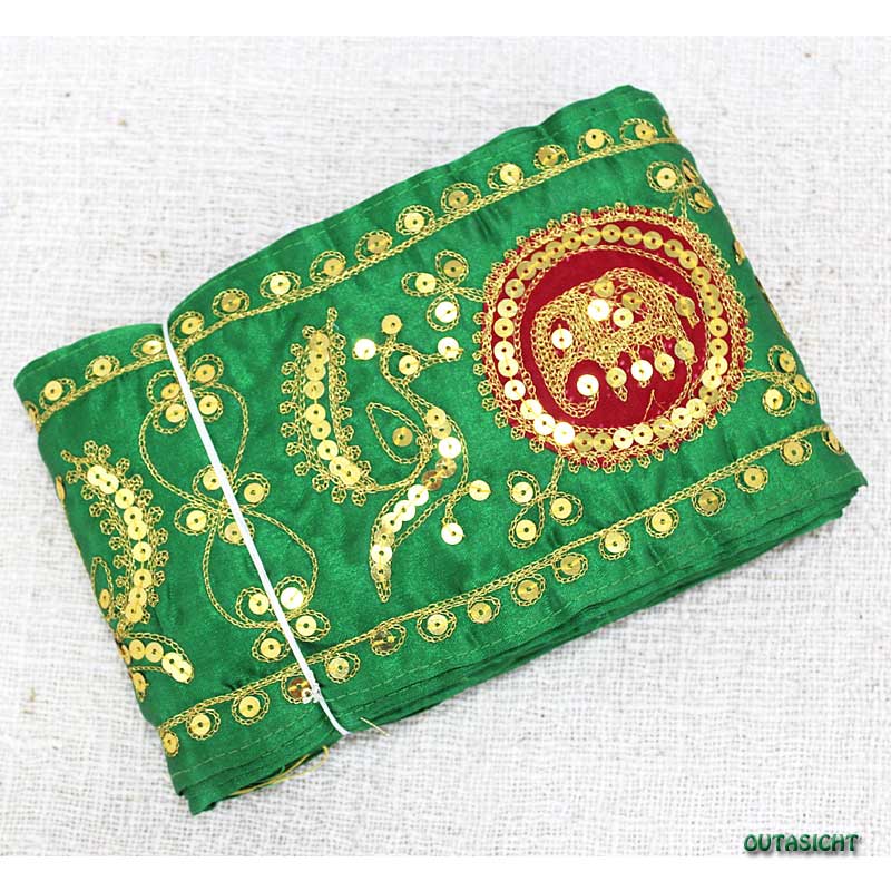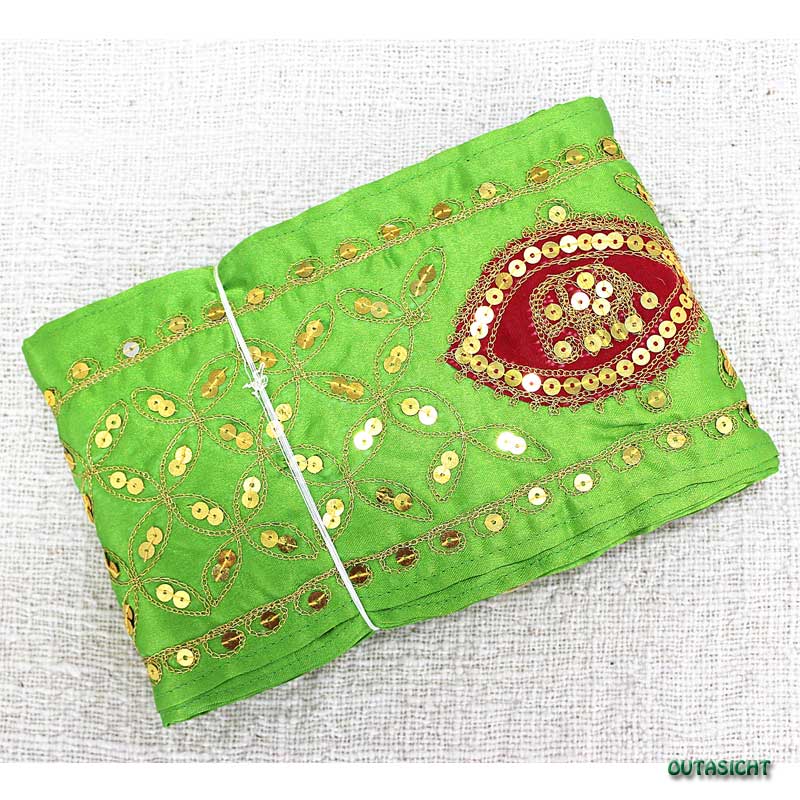 刺繍 サリーボーダー(E) 緑色 インド INT-19