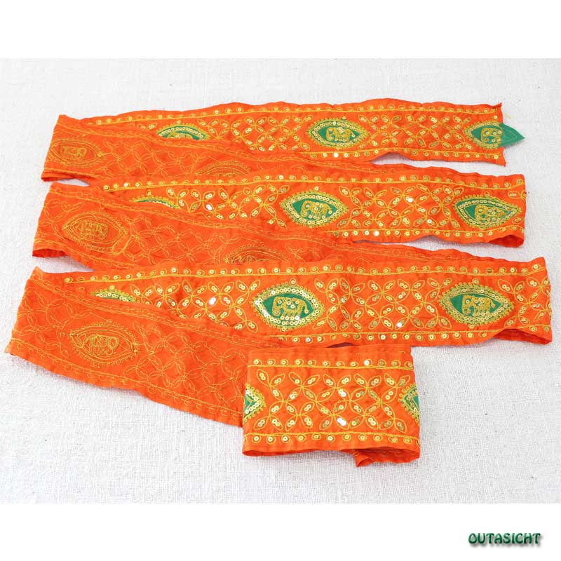 刺繍 サリーボーダー(A) オレンジ色 インド INT-15