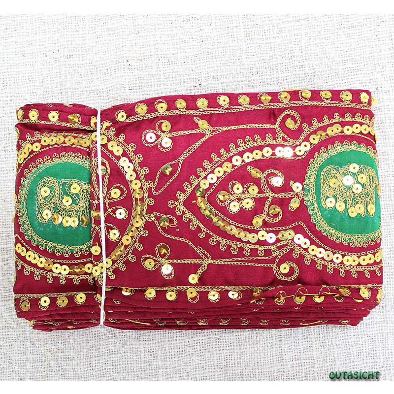 刺繍 サリーボーダー(G) 赤色 インド INT-21
