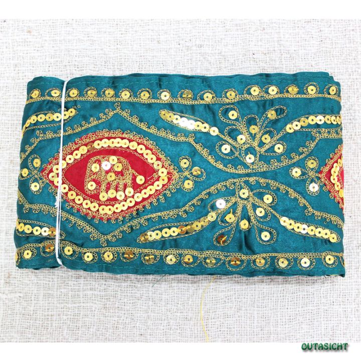 刺繍 サリーボーダー(C) 青緑色 インド INT-17