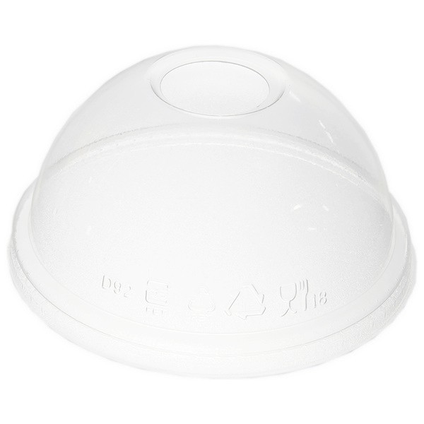 PETカップリッド(蓋) ドーム92 透明 ストロー穴あり(丸穴) 50個×20袋(1000個)【取り寄せ商品・即納不可】