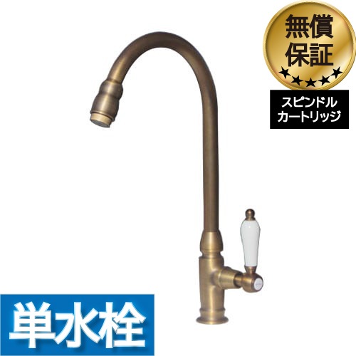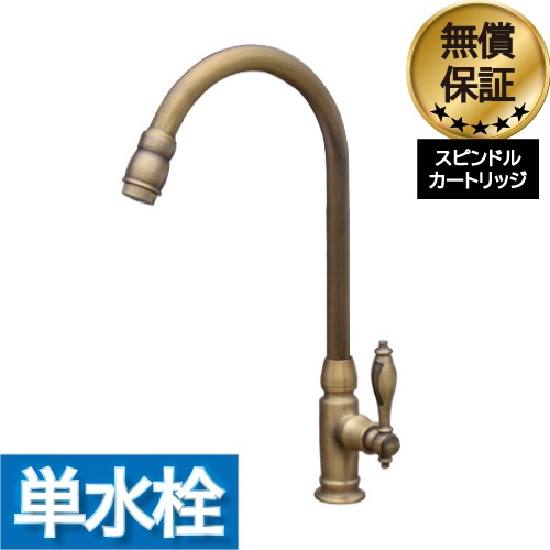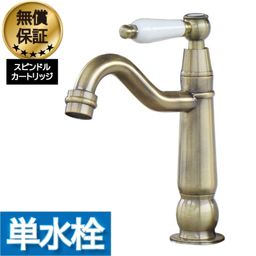 洗面水栓 蛇口 水栓金具 単水栓 シングルレバーハンドル アンティークゴールド(古金) [奥行18×吐水口高8.7cm] INK-...