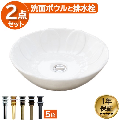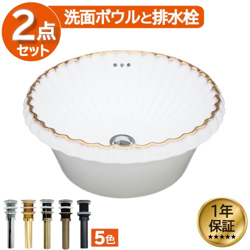洗面ボウル 陶器 オンorオーバーカウンター両用タイプ ラウンド 幅46cm INK-0401040H