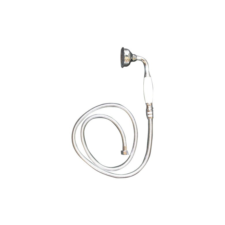 シャワーヘッド ホース付き(1.5m) アンティーク 取手陶器 シルバー(銀) ヘッド:幅6.5×奥行9.5×高21cm INK-...
