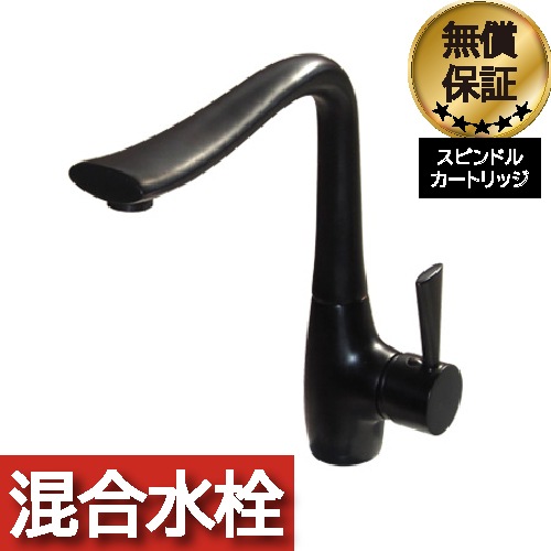 蛇口 混合水栓 シングルレバーハンドル ブラック(黒) [奥行21.8×吐水口高23cm] INK-03030316H