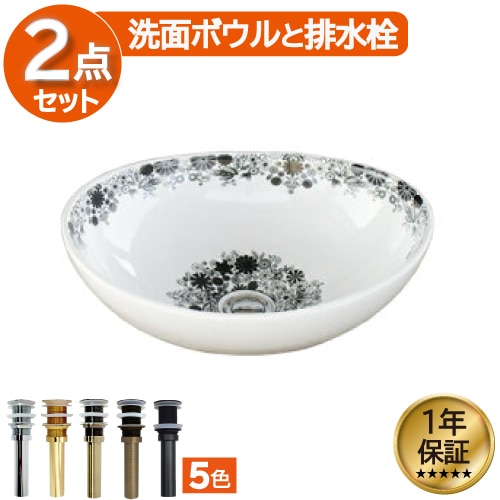 洗面ボウル おしゃれ 陶器 丸型 ボール 花柄 オンカウンター 置き型 ベッセルシンク 置き型 白黒 ホワイト 幅41×奥行33×...