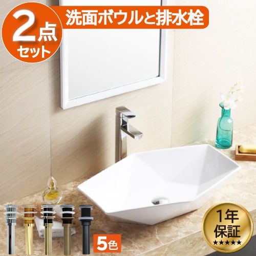洗面ボウル 陶器 六角形 オンカウンター 置き型 ベッセルシンク 置き型 オーバーフロー無し ホワイト 幅57×奥行37×高12....