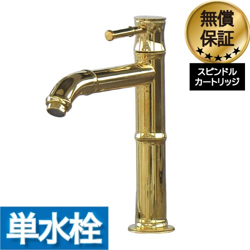 洗面水栓 蛇口 単水栓 シングルレバーハンドル ゴールド(金) バンブー [奥行3.5×吐水口高13.5cm] INK-03020...