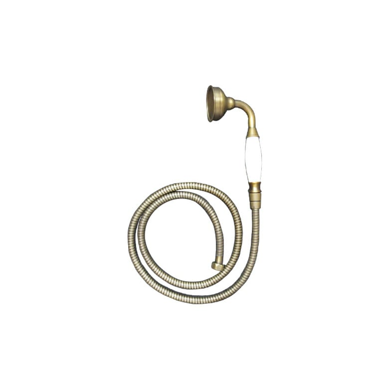 シャワーヘッド ホース付き(1.5m) アンティーク 取手陶器 アンティークゴールド(古金) ヘッド:幅6.5×奥行9.5×高21...