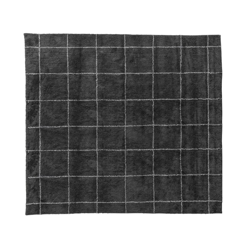 【正方形 185×185】チェック柄 ふわふわ ウィンドペン柄 コットンラグ (グレー)