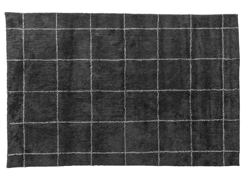 【長方形 130×190】チェック柄 ふわふわ ウィンドペン柄 コットンラグ (グレー)