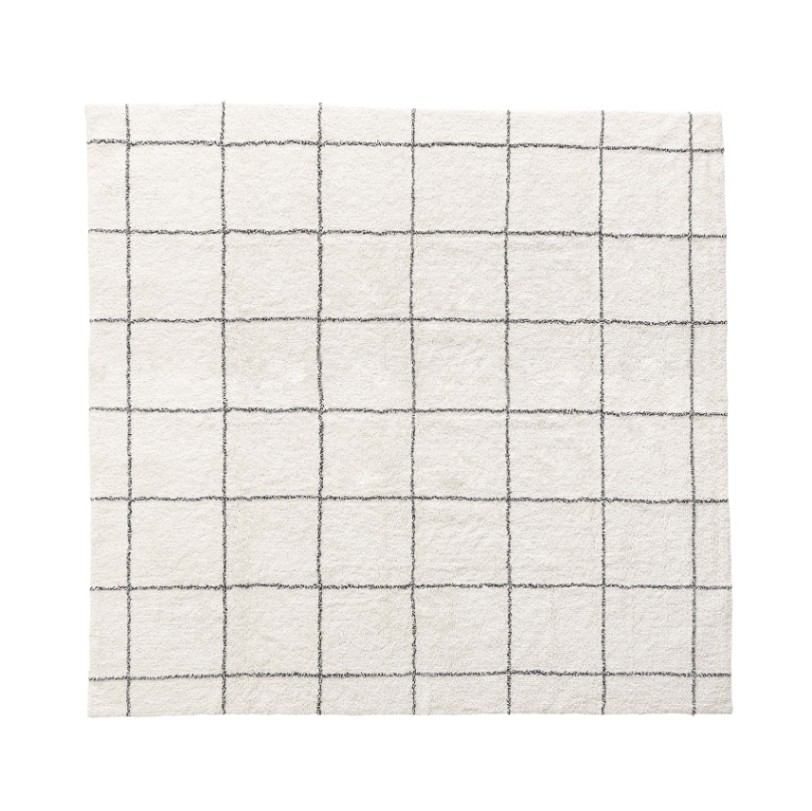 正方形 185×185】チェック柄 ふわふわ ウィンドペン柄 コットンラグ (アイボリー)