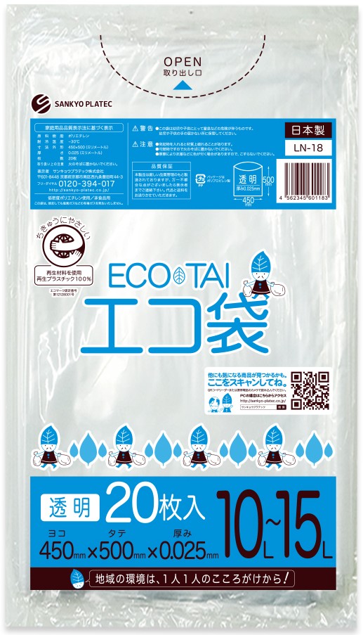 エコマーク付き ごみ袋 10~15リットル 透明 0.025mm厚(50枚×60冊)