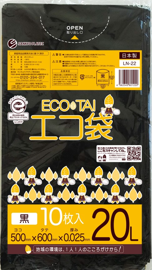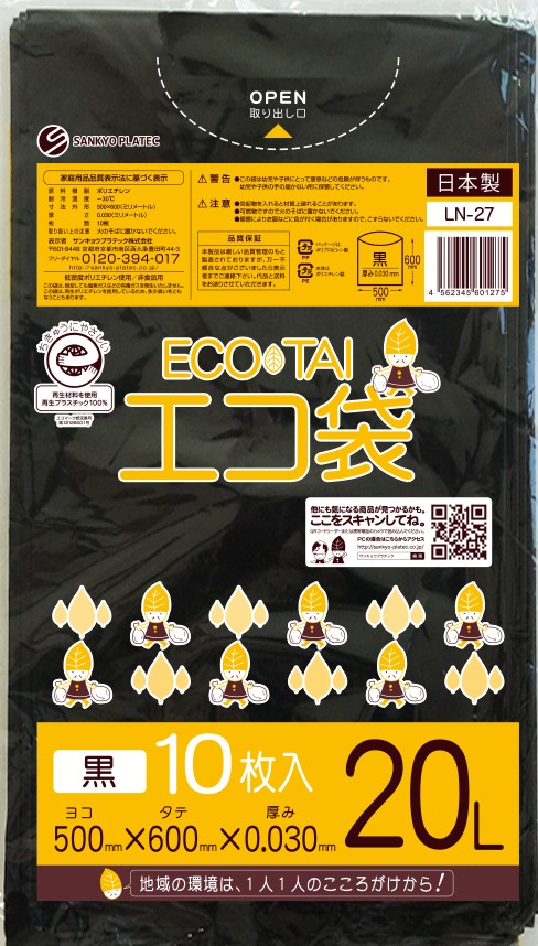 エコマーク付き ゴミ袋 20リットル 幅広タイプ 黒 0.030mm厚(10枚×60冊)