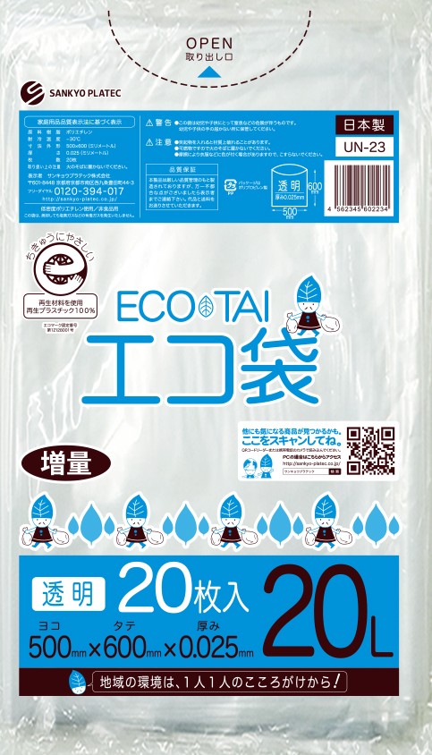 エコマーク付き ゴミ袋 20リットル 幅広タイプ 透明 0.030mm厚(10枚×60冊)