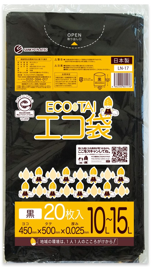 エコマーク付き ごみ袋 10~15リットル 黒 0.025mm厚(20枚×60冊)