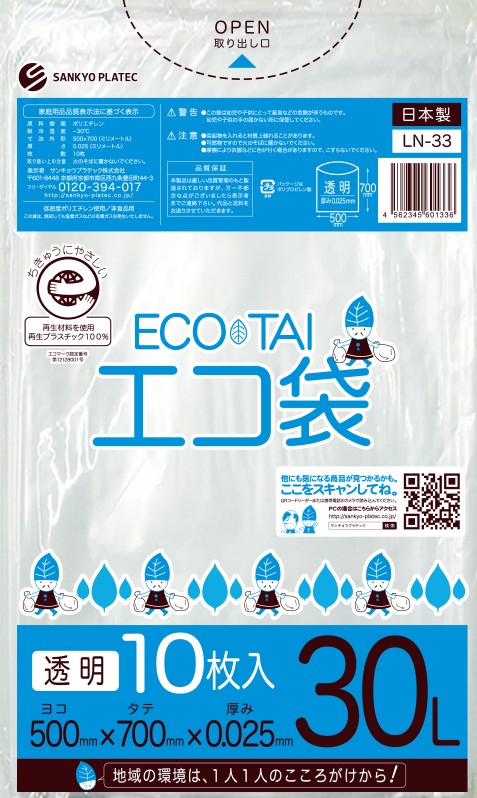 エコマーク付き ゴミ袋 30リットル 透明 0.025mm厚(10枚×100冊)