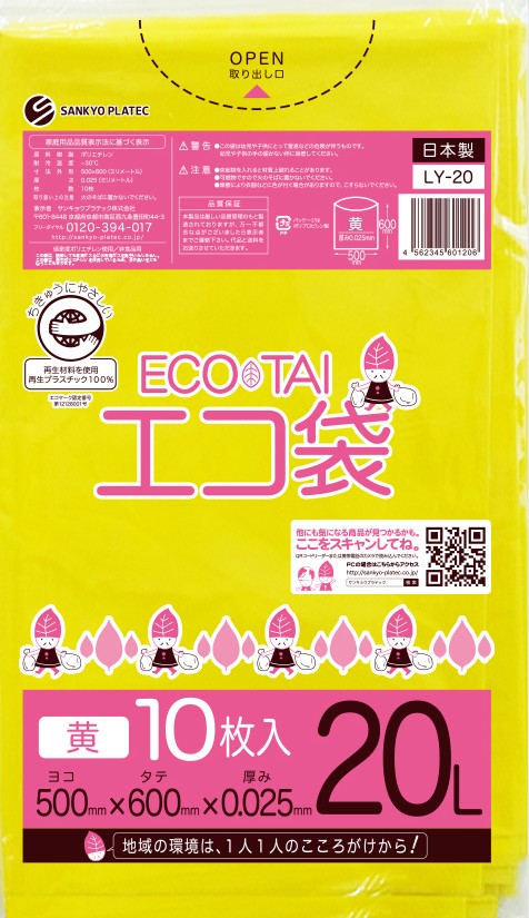 エコマーク付き ゴミ袋 20リットル 黄 0.025mm厚(10枚×100冊)