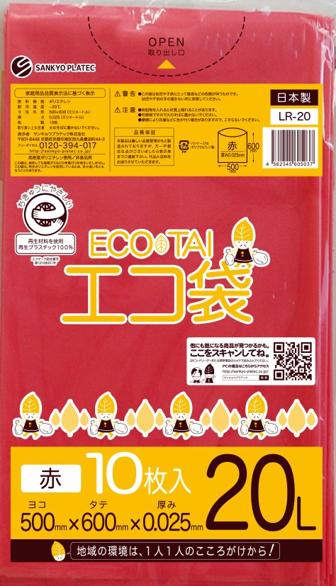 エコマーク付き ゴミ袋 20リットル 赤 0.025mm厚(10枚×100冊)